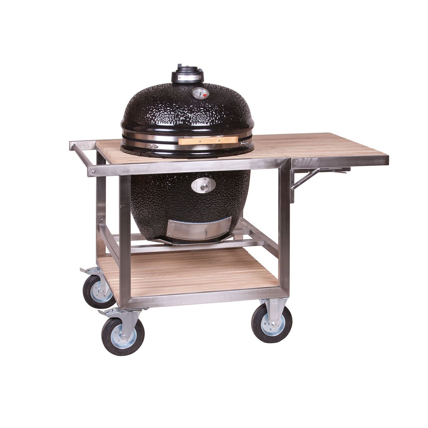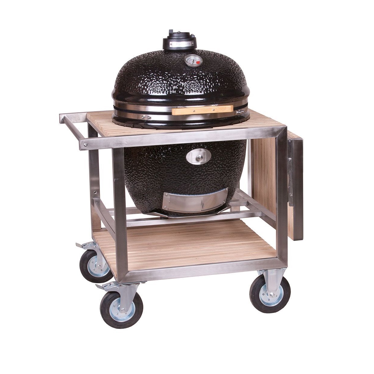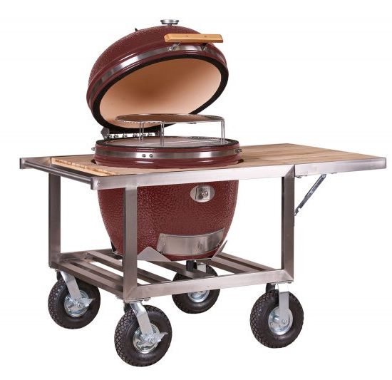 A Monolith grillkocsi mobil szabadtéri konyhává alakítja a kerámia grillezőt, az oldalsó asztal az ételek előkészítéséhez és a grilleszközök tárolására is alkalmas.
